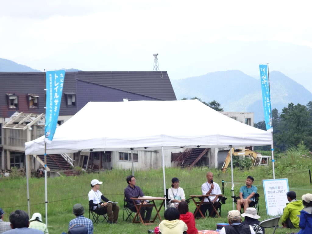 ところで、登山道整備の前日は、谷川岳ヨッホ天神平にて「たにがわトレイルサミット」と銘打ち、トークショーが開かれました。