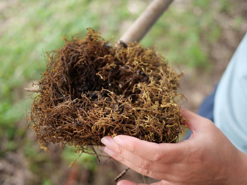 大き目のコケが上手に編み込まれ、手で持っても崩れません。ふかふかのベッドになっています。