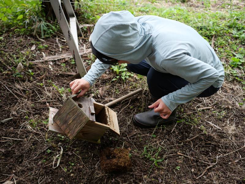 巣箱は泥が少し溜まっていたので、お掃除してから元の位置に戻しました。