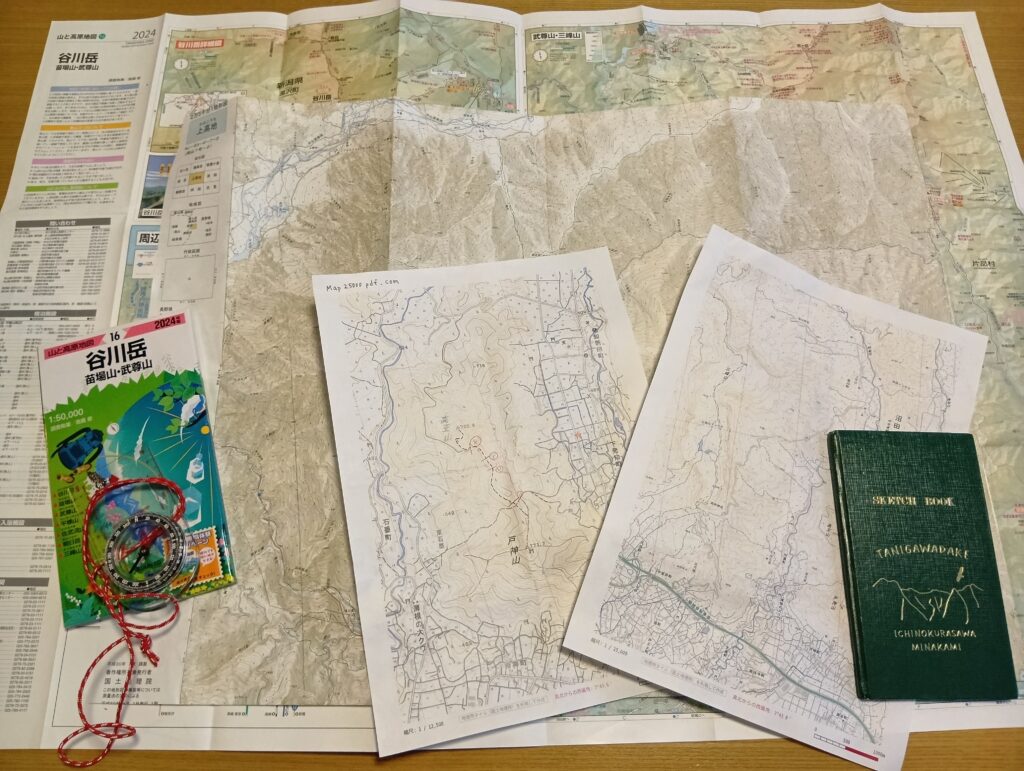 皆さんご存知、昭文社の「山と高原地図」、国土地理院の2万5千分の1、それからネット上で取得した2万5千分の1と、その倍の1万2500分の1です。